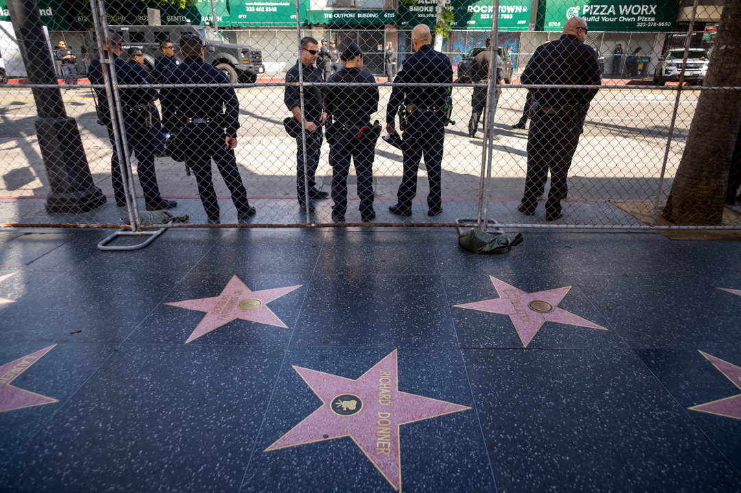 | 15ÀÏ(ÇöÁö½Ã°£) ¹Ì±¹ ·Î½º¾ØÁ©·¹½º ÇÒ¸®¿ìµå µ¹ºñ±ØÀå¿¡¼ ¿¸° Á¦98ȸ ¾ÆÄ«µ¥¹Ì ½Ã»ó½ÄÀ» °æºñÇϱâ À§ÇØ °æÂûµéÀÌ Ã¶Á¶¸Á ¾Õ¿¡¼ Áö۰í ÀÖ´Ù. ·ÎÀÌÅÍ¿¬ÇÕ´º½º |