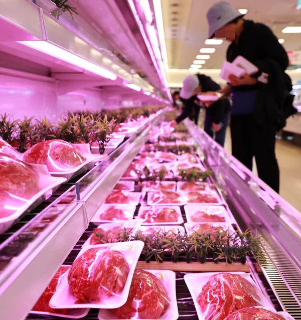 30ÀÏ ¿ÀÀü ºÎ»êÀÇ ÇÑ ´ëÇü¸¶Æ® Á¤À°ÄÚ³Ê Áø¿´ë ¾Õ¿¡´Â ¡®1µî±Þ ÇÑ¿ì µî½É 100g 7950¿ø¡¯À̶ó´Â ºÓÀº ÇÒÀÎ ¹®±¸°¡ ºÙ¾î ÀÖ¾ú´Ù. ³ÃÀå ÄÚ³Ê ¾Õ¿¡¼ °¡°ÝÇ¥¸¦ ²Ä²ÄÈ÷ ºñ±³ÇÏ´Â ¼ÒºñÀÚµéÀº ¡°¿äÁò ¹°°¡¿¡ ÀÌ Á¤µµ¸é ½Î´Ù¡±¸ç ÁÖÀú ¾øÀÌ »óǰÀ» Àå¹Ù±¸´Ï¿¡ ´ã¾Ò´Ù.