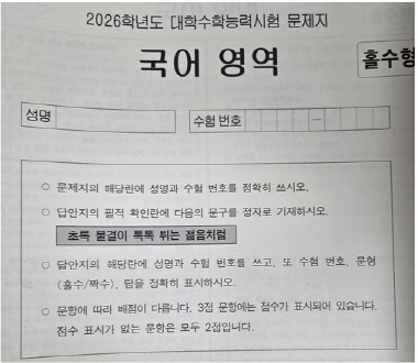 13ÀÏ Ä¡·¯Áø 2026Çг⵵ ´ëÇмöÇдɷ½ÃÇè(¼ö´É) ´ä¾ÈÁö¿¡ ½Ç¸° ÇÊÀû È®ÀÎ ¹®±¸´Â ¾È±Ô·Ê ½ÃÀÎÀÇ ¡®¾ÆÄ§ »êÃ¥¡¯ °¡¿îµ¥ ÇÑ ±¸ÀýÀ̾ú´Ù.