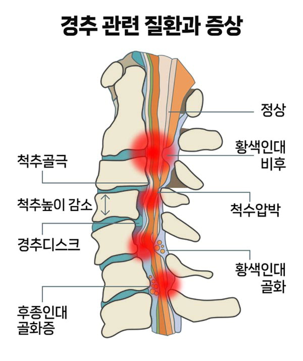 Åë»ó ¸ñµð½ºÅ©´Â ¸»ÃʽŰæÁúȯÀ¸·Î, ´ë°³ Æ¢¾î³ª¿À´Â ¹æÇâ¿¡ µû¶ó ÇÑÂÊ »óÁö¿¡¸¸ Áõ»óÀÌ ±¹ÇѵŠ¹ßº´ÇÑ´Ù. ÀÌ¿Í ´Þ¸® °æÃßô¼öº´ÁõÀº ÁßÃ߽ŰæÁúȯÀ¸·Î, ´ë°³ ¾çÂÊ »óÁö¿Í ¼Õ¿¡ Áõ»óÀÌ ¿À°í ½ÉÇϸé ÇÏÁö±îÁö Áõ»óÀÌ »ý±â´Âµ¥, ³ú°æ»öó·³ ¹Ý½Å¸¶ºñ°¡ ¾Æ´Ï¶ó ¸ñ ¾Æ·¡·Î Àü½ÅÀûÀÎ »çÁö¸¶ºñ Áõ»óÀÌ ³ªÅ¸³´Ù. °æÃßô¼öº´ÁõÀÇ Áõ»óÀº ô¼öÀÇ ÇãÇ÷·Î ½ÃÀ۵а¡¶ûºñ¿¡ ¿Ê Á¥µí ¼¼È÷ ½ÃÀ۵ǹǷΠº´¿øÀ» ã´Â °Ô ´Ê¾îÁú ¼ö ÀÖ¾î ´õ¿í ÁÖÀǸ¦ ¿äÇÑ´Ù.
