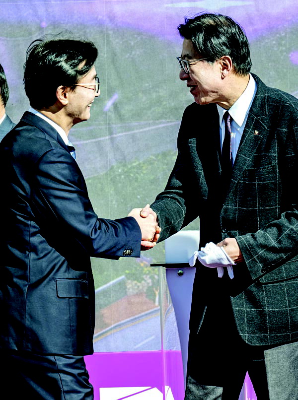 ¹ÚÇüÁØ ºÎ»ê½ÃÀå°ú ´õºÒ¾î¹ÎÁÖ´ç ÀüÀç¼ö ÀÇ¿øÀÌ 9ÀÏ ¸¸´ö~¼¾ÅÒ °í¼ÓÈ­µµ·Î(´ë½Éµµ) ¸¸´ö³ªµé¸ñ¿¡¼­ ¿­¸° ´ë½Éµµ °³Åë½Ä¿¡¼­ ¸¸³ª ¹Ý°©°Ô ¾Ç¼öÇϰí ÀÖ´Ù.