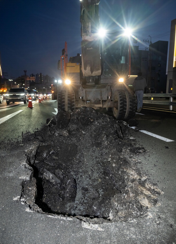 °³ÅëµÈ Áö µÎ ´Þµµ ¾È µÈ ´ë±Ô¸ð ÁöÇÏÂ÷µµ À§ µµ·Î¿¡¼ Áö¹Ý ħÇÏ Çö»óÀÌ ¹ß»ýÇØ ½Ã¹ÎÀ» ºÒ¾ÈÄÉ ÇÑ´Ù. Áö³ 4~6ÀÏ ¸¸´ö~¼¾ÅÒ µµ½Ã°í¼Óȵµ·Î(´ë½Éµµ) °ø»ç °¡½Ã¼³ ±¸°£ÀÎ ³»¼ºÁöÇÏÂ÷µµ¿Í ¼ö¿µ°º¯ÁöÇÏÂ÷µµ ÁøÃâÀÔ·Î ÀÏ´ë¿¡¼ Áö¸§ 1.5~2£í Å©±âÀÇ Áö¹Ý ħÇϰ¡ ÀÕµû¶ó ¹ß°ßµÆ´Ù. ³»¼ºÁöÇÏÂ÷µµ¿¡¼´Â 4°÷, ¼ö¿µ°º¯ÁöÇÏÂ÷µµ ÁøÃâÀԺο¡¼´Â 3°÷ÀÇ µµ·Î ħÇÏ Çö»óÀÌ º¸¿´´Ù. ºÎ»ê½Ã´Â ±ä±Þ º¹±¸¿¡ ³ª¼¹°í, ÀÌ ÀÛ¾÷ÀÇ ¿©ÆÄ·Î ³»¼ºÁöÇÏÂ÷µµ¿Í ¼ö¿µ°º¯ÁöÇÏÂ÷µµ ÁøÃâÀԷΰ¡ ÅëÁ¦µÅ ³ªµéÀÌ Â÷·®ÀÌ ÁýÁßµÈ ÁÖ¸» ¿ÀÈÄ µµ½É ±³ÅëÀº ±Ø½ÉÇÑ Á¤Ã¼¸¦ ºú¾ú´Ù. ±³Åë ÅëÁ¦´Â º¹±¸°¡ ¿Ï·áµÈ ¿ù¿äÀÏ ¿ÀÀü 6½Ã30ºÐ±îÁö À̾îÁ³´Ù.
