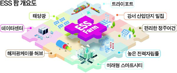 ½Ã°¡ ÀÌ Æ¯±¸¿¡¼­ ÃßÁøÇÒ ÇÙ½É »ç¾÷Àº ESS ÆÊ(Farm¡¤³óÀå)ÀÌ´Ù. Á¤È®È÷ °­¼­±¸ ¸íÁöµ¿ 3041-6 ÀÏ¿ø¿¡ ±¸ÃàµÇ¸ç ¿¡ÄÚµ¨Å¸½ÃƼ ¿­¿øºÎÁö´Ù. ÃÑ»ç¾÷ºñ´Â 2094¾ï ¿ø(¹Î°£)ÀÌ´Ù. 2030³â±îÁö 500MW(¸Þ°¡¿ÍÆ®) ±Ô¸ðÀÇ ESS ÆÊÀ» ±¸ÃàÇÑ µÚ Àα٠µ¥ÀÌÅͼ¾ÅÍ¿Í »ç¾÷ü, ºÎ»êÇ× ¼±¹Ú µî¿¡ Àú·ÅÇÑ °¡°ÝÀ¸·Î Àü·ÂÀ» °ø±ÞÇÑ´Ù´Â °Ô ½ÃÀÇ °èȹÀÌ´Ù. ESSÀÇ ±âº» °³³äÀº ¡®¹ßÀü¼Ò¿¡¼­ °úÀ× »ý»êµÈ Àü·ÂÀ» ÀúÀåÇØ µÎ¾ú´Ù°¡ Àü·ÂÀÌ ºÎÁ·ÇÒ ¶§ ¼ÛÀüÇØÁÖ´Â ½Ã½ºÅÛ¡¯ÀÌ´Ù.
