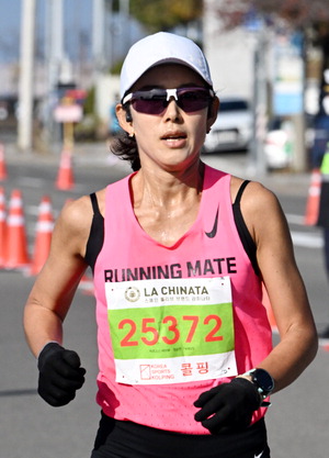 ¿©ÀÚ ÇÏÇÁ ÄÚ½º¿¡¼ 1½Ã°£18ºÐ50ÃÊÀÇ ±â·ÏÀ¸·Î °á½Â¼±À» °¡Àå ¸ÕÀú Åë°úÇÑ Á¤¼ø¿¬(51¡¤´ë±¸) ¾¾´Â Áö³ÇØ¿¡ À̾î 2³â ¿¬¼ÓÀ¸·Î ¿ì½ÂÀ» Â÷ÁöÇß´Ù. Áö³ÇØ ¿ì½ÂÀ» °Åµ×À½¿¡µµ ºÒ±¸ÇÏ°í º»ÀÎÀÇ ±â·Ï¿¡ ¸¸Á·ÇÏÁö ¸øÇß´ø ±×´Â ÀýÄ¡ºÎ½ÉÇϸç À̹ø ´ëȸ¸¦ ÁغñÇß´Ù. Á¤ ¾¾´Â ¡°¿ÃÇØ´Â ÀÏÁÖÀÏ¿¡ 4~5ȸ ²ÙÁØÈ÷ ´Þ¸®¸ç ¿¬½ÀÇß´Ù¡±¸ç ¡°ÆäÀ̽º Á¶Àýµµ Àß µÆ°í ¾ÖÃÊ ¸ñÇ¥Çß´ø ±â·ÏÀ» ´Þ¼ºÇØ ¸Å¿ì ¸¸Á·½º·´´Ù¡±°í ¹àÇû´Ù.