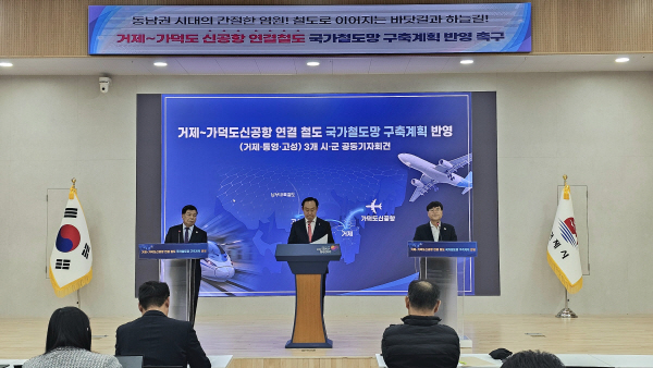 | °æ³² °ÅÁ¦½Ã¡¤Å뿵½Ã¡¤°í¼º±º µî 3°³ ½Ã¡¤±º ´ÜüÀåÀÌ °øµ¿ ±âÀÚȸ°ßÀ» ÅëÇØ ¡®°ÅÁ¦~°¡´öµµ½Å°øÇ× ¿¬°áöµµ¡¯¸¦ Á¤ºÎÀÇ ¡®Á¦5Â÷ ±¹°¡Ã¶µµ¸Á ±¸Ãà°èȹ¡¯(2026~2035)¿¡ ¹Ý¿µ½ÃÄÑ ÁÙ °ÍÀ» °·Â Ã˱¸Çϰí ÀÖ´Ù. °ÅÁ¦½Ã Á¦°ø