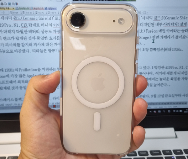 ¾ÆÀÌÆù ¿¡¾î ÈĸéÀº ¡®¼¼¶ó¹Í ½¯µå(Ceramic Shield)¡¯·Î, Àü¸éÀº 3¹è ´õ Çâ»óµÈ ±ÜÈû ¹æÁö ¼º´ÉÀ» Á¦°øÇÏ´Â ¡®¼¼¶ó¹Í ½¯µå 2(Ceramic Shield 2)¡¯°¡ »ç¿ëµÆ´Ù. ¸·°ÇÑ A19 Pro(6 ÄÚ¾î CPU, 5 ÄÚ¾î GPU), N1(Wi-Fi 7, Bluetooth 6 Áö¿ø), C1X žÀç·Î ÇϳªÀÇ ¾ÆÀÌÆù¿¡ °¡Àå ¸¹Àº ¾ÖÇà Á¦ÀÛ Ä¨ÀÌ ÀåÂøµÆ´Ù. »õ·Ó°Ô µðÀÚÀÎµÈ ³»ºÎ ¾ÆÅ°ÅØÃ³(¼³°è ±¸Á¶)¿Í ¼ÒÇÁÆ®¿þ¾î ÃÖÀûȰ¡ ´õÇØÁ® Ź¿ùÇÑ ¹èÅ͸® ¼º´Éµµ ÀÚ¶ûÇÑ´Ù´Â °Ô ¾ÖÇà ¼³¸íÀÌ´Ù. °·ÂÇÑ 48MP(4800¸¸ ȼÒ) Fusion ¸ÞÀÎ Ä«¸Þ¶ó´Â ³î¶ó¿î ÈÁúÀ» ÀÚ¶ûÇÏ´Â ³× °³ÀÇ ·»Áî°¡ žÀçµÈ °Í°ú µ¿ÀÏÇÑ È¿°ú¸¦ ³»°í 18MP(1800¸¸ ȼÒ) ¼¾ÅÍ ½ºÆäÀÌÁö(Center Stage) Àü¸é Ä«¸Þ¶ó°¡ µé¾î°¬´Ù. ¼¾ÅÍ ½ºÅ×ÀÌÁö¶õ Ä«¸Þ¶ó°¡ ÇÇ»çü¸¦ °¨ÁöÇØ ÇÇ»çü ´ë½Å Ä«¸Þ¶ó°¡ ¿òÁ÷¿© ÇÇ»çü¸¦ °¡¿îµ¥·Î ¸ð¾ÆÁÖ´Â ±â´ÉÀÌ´Ù.