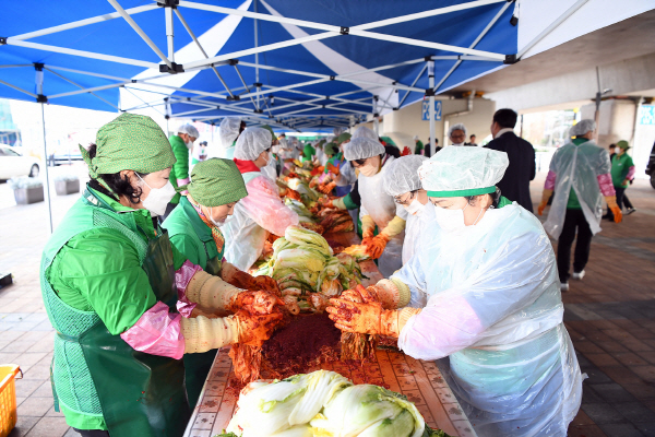 À̳¯ Çà»ç¿¡´Â µ¿·¡±¸ »õ¸¶À»ºÎ³àȸ ÃÖ°æ¾Ö ȸÀåÀ» ºñ·ÔÇÑ »õ¸¶À»ÁöµµÀÚ 60¿© ¸íÀÌ Âü¿©ÇØ ±èÀå ±èÄ¡ 1,000Æ÷±â¸¦ ´ã°¬À¸¸ç, ¿Ï¼ºµÈ ±èÀå ±èÄ¡´Â °¢ µ¿ ÇàÁ¤º¹Áö¼¾Å͸¦ ÅëÇØ °ü³» º¹Áö »ç°¢Áö´ë 325¼¼´ë¿¡ Àü´ÞµÆ´Ù.
