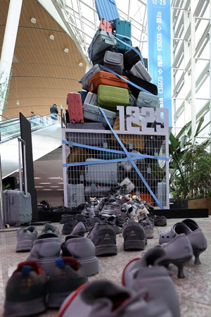 12¡¤29 Á¦ÁÖÇ×°ø ¿©°´±â Âü»ç 1Áֱ⸦ ÇÏ·ç ¾ÕµÐ 28ÀÏ Àü³² ¹«¾È±¹Á¦°øÇ׿¡ Ã߸ð Á¶Çü¹°ÀÌ ¼³Ä¡µÅ ÀÖ´Ù. »ç°í Èñ»ýÀÚµéÀÌ ³²±ä ¿©Çà¿ë °¡¹æ°ú ½Å¹ßÀ» »ó¡ÇÑ´Ù. ¿¬ÇÕ´º½º