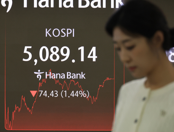 À̳¯ ÄÚ½ºÇÇ´Â 74.43Æ÷ÀÎÆ®(1.44%) ³»¸° 5089.14¿¡ ÀåÀ» ¸¶ÃÆ´Ù. Áö¼ö´Â ÀüÀå ´ëºñ 150.42Æ÷ÀÎÆ®(2.91%) ³»¸° 5,013.15·Î Ãâ¹ßÇÑ µÚ ÇѶ§ 4,899.30±îÁö ¹Ð·Á 4,900¼±ÀÌ ±úÁ³Áö¸¸, ÀÌÈÄ ³«ÆøÀ» ÁÙ¿© 5000¼±À» ȸº¹Çß´Ù.