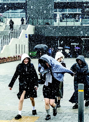10ÀÏ ¿ÀÀü ºÎ»ê µ¿±¸ ºÎ»ê¿ª ÀÏ¿ø¿¡ ´«ÀÌ ³»·Á °ü±¤°´µéÀÌ ¸ðÀÚ¸¦ µÚÁý¾î ¾²°í ´Þ·Á°¡°í ÀÖ´Ù. À̳¯ Æ÷±ÙÇÑ ³¯¾¾ ¼Ó ´«ÀÌ ³»·Á Àû¼³·®Àº ±â·ÏµÇÁö ¾Ê¾Ò´Ù.