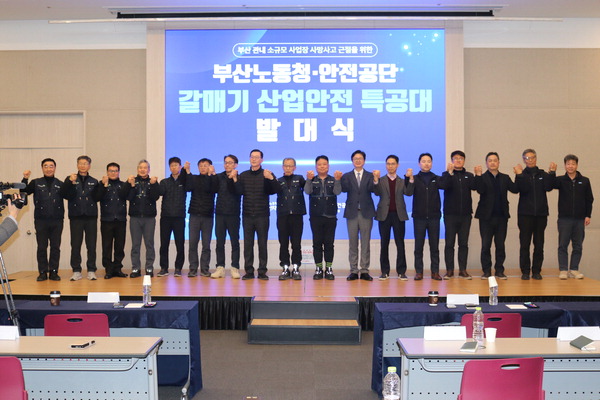 °¥¸Å±â »ê¾÷¾ÈÀü Ư°ø´ë´Â °í¿ë³ëµ¿ºÎ, ¾ÈÀüº¸°Ç°ø´Ü, ¡®¾ÈÀüÇÑ ÀÏÅÍ ÁöÅ´ÀÌ¡¯ µîÀ¸·Î ±¸¼ºµÆ´Ù. °Ç¼³¾÷¡¤Á¦Á¶¾÷¡¤Á¶¼±¾÷ µî »ç¸Á»ç°í°¡ ÀæÀº ºÎ»êÁö¿ª ¼Ò±Ô¸ð »ç¾÷ÀåÀ» ÁýÁß Á¡°ËÇØ »ê¾÷ÀçÇØ¸¦ ÁÙÀÌ´Â °ÍÀÌ ¸ñÇ¥´Ù. À̳¯ ¹ß´ë½Ä¿¡´Â ºÎ»êÁö¹æ°í¿ë³ëµ¿Ã»Àå°ú °¢ °úÀ塤°¨µ¶°ü, ¾ÈÀüº¸°Ç°ø´Ü ºÎ»ê±¤¿ªº»ºÎÀå, ºÎ»ê½Ã »ê¾÷¾ÈÀüÆÀÀå, ´ëÇÑ»ê¾÷¾ÈÀüÇùȸ ºÎ»êÁö¿ªº»ºÎ °ü°èÀÚ, Á¦Á¶¡¤°Ç¼³¡¤Á¶¼± ºÐ¾ß ÁöÅ´ÀÌ µî 114¸íÀÌ Âü¼®Çß´Ù.