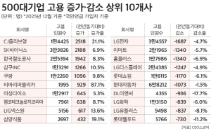 500´ë±â¾÷ °í¿ë Áõ°¡ ¹× °¨¼Ò »óÀ§ 10°³»ç. CEO½ºÄÚ¾î