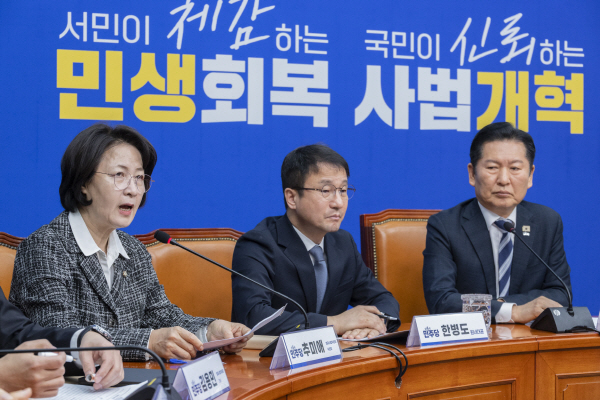 ±¹È¸ ¹ýÁ¦»ç¹ýÀ§¿øÀåÀÎ Ãß¹Ì¾Ö ´õºÒ¾î¹ÎÁÖ´ç ÀÇ¿øÀÌ 17ÀÏ ±¹È¸¿¡¼­ ¿­¸° °ËÂû °³Çõ ÀÔ¹ýÀÎ Áß´ë¹üÁ˼ö»çû¹ý¡¤°ø¼Òû¹ý °ü·Ã ±âÀÚȸ°ß¿¡ Âü¼®ÇØ Ã³¸® ¹æÇâ¿¡ ´ëÇØ ¸»Çϰí ÀÖ´Ù. ¿¬ÇÕ´º½º
