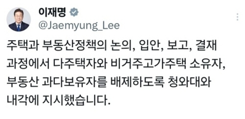ÀÌÀç¸í ´ëÅë·ÉÀº 22ÀÏ ¡°ÁÖÅðú ºÎµ¿»ê Á¤Ã¥ÀÇ ³íÀÇ¡¤ÀԾȡ¤º¸°í¡¤°áÀç °úÁ¤¿¡¼­ ´ÙÁÖÅÃÀÚ¿Í ºñ°ÅÁÖ °í°¡ ÁÖÅà ¼ÒÀ¯ÀÚ, ºÎµ¿»ê °ú´Ùº¸À¯ÀÚ¸¦ ¹èÁ¦Çϵµ·Ï û¿Í´ë¿Í ³»°¢¿¡ Áö½ÃÇß´Ù¡±°í ¹àÇû´Ù. ÀÌ ´ëÅë·ÉÀº À̳¯ ¿¢½º(X¡¤¿¾ Æ®À§ÅÍ)¿¡ ¿Ã¸° ±Û¿¡¼­ ¡°ºÎµ¿»ê °øÈ­±¹ Å»ÃâÀº ´ëÇѹα¹ ´ëÀüȯÀ» À§ÇÑ ÇÙ½É ÁßÀÇ ÇÙ½É °úÁ¦´Ù. ºÎµ¿»êÀ̳ª ÁÖÅÃÁ¤Ã¥¿¡¼­´Â ´Ü 0.1%ÀÇ °áÇÔÀ̳ª ±¸¸Ûµµ À־´Â ¾È µÈ´Ù¡±¸ç À̰°ÀÌ ¾ð±ÞÇß´Ù. ÀÌ ´ëÅë·ÉÀº ¡°´ÙÁÖÅÃÀÚ³ª ÅõÀÚ¡¤Åõ±â¿ë ºñ°ÅÁÖ ÁÖÅà º¸À¯ÀÚ, ÃÊ°í°¡ÁÖÅà º¸À¯ÀÚ ÀÚü¸¦ ºñ³­ÇÒ ÀÌÀ¯´Â ¾ø´Ù¡±¸é¼­µµ ¡°ÁÖÅà º¸À¯°¡ ¸¹À»¼ö·Ï À¯¸®Çϵµ·Ï ¼¼Á¦¡¤±ÝÀ¶¡¤±ÔÁ¦ Á¤Ã¥À» ¸¸µç °øÁ÷ÀÚµéÀÌ ¹®Á¦¡±¶ó°í ÁöÀûÇß´Ù. ƯÈ÷ ¡°±×·± Á¦µµ¸¦ ¸¸µé°Å³ª ¹æÄ¡ÇÑ °øÁ÷ÀÚ°¡ ±× À߸øµÈ Á¦µµ¸¦ ¾Ç¿ëÇØ Åõ±â±îÁö ÇÑ´Ù¸é, ±×´Â ºñÆÇÀ» ³Ñ¾î Á¦Àç±îÁö ¹Þ´Â °ÍÀÌ ¸¶¶¥ÇÒ °Í¡±À̶ó¸ç ¡°Áö±ÝºÎÅÍ¶óµµ ºÎµ¿»ê Á¤Ã¥¿¡¼­ ¹èÁ¦ÇÏ´Â °Ô Ÿ´çÇÏÁö ¾Ê°Ú´À³Ä¡±°í °­Á¶Çß´Ù.
