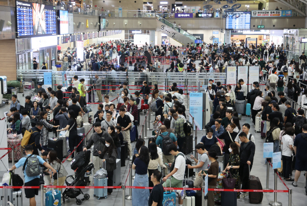 Ãß¼® ¿¬ÈÞ¸¦ ÇÏ·ç ¾ÕµÐ Áö³­ 2ÀÏ ºÎ»ê ±èÇØ±¹Á¦°øÇ× ±¹Á¦¼± Ãâ±¹ÀåÀÌ ºÕºñ°í ÀÖ´Ù. »çÁøÀº ±â»ç¿Í °ü·Ã ¾øÀ½. ¿¬ÇÕ´º½º