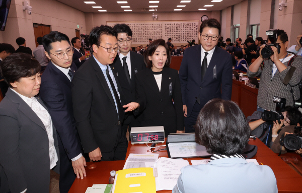 13ÀÏ ±¹È¸ ´ëÇÑ ¹ýÁ¦»ç¹ýÀ§¿øÈ¸ ±¹Á¤°¨»ç¿¡¼­ ±¹¹ÎÀÇÈû ÀÇ¿øµéÀÌ Ãß¹Ì¾Ö ¹ý»çÀ§¿øÀå¿¡°Ô Á¶Èñ´ë ´ë¹ý¿øÀå À̼®À» ¿ä±¸Çϸç Ç×ÀÇÇϰí ÀÖ´Ù. ¿¬ÇÕ´º½º