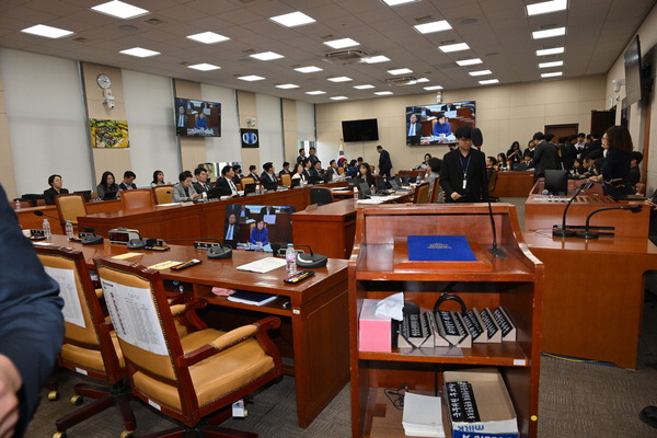 ¹ÎÁÖ´ç ¼Ò¼Ó ÃÖ¹ÎÈñ °ú¹æÀ§¿øÀåÀº À̳¯ ¿ÀÀü ±¹°¨ ½ÃÀÛºÎÅÍ ±è ÀÇ¿ø°ú ¹Ú ÀÇ¿øÀÇ Ã¥ÀÓ °ø¹æÀ» µÎ°í ¿©¾ß°¡ °í¼ºÀ» ÁÖ°í ¹ÞÀÚ °³È¸ 40¿© ºÐ ¸¸¿¡ ÁßÁöÇß´Ù. ¿ÀÈÄ 2½Ã¿¡ ¼Ó°³ÇßÀ¸³ª ´Ù½Ã 30ºÐ ¸¸¿¡ ºñ°ø°³·Î ÀüȯÇß´Ù.