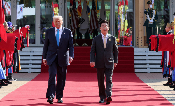 | ÀÌÀç¸í ´ëÅë·É°ú µµ³Îµå Æ®·³ÇÁ ¹Ì±¹ ´ëÅë·ÉÀÌ 29ÀÏ °æºÏ °æÁÖ¹Ú¹°°ü¿¡¼ Á¤»óȸ´ãÀåÀ¸·Î À̵¿Çϰí ÀÖ´Ù. 2025.10.29 [´ëÅë·É½ÇÅë½Å»çÁø±âÀÚ´Ü]