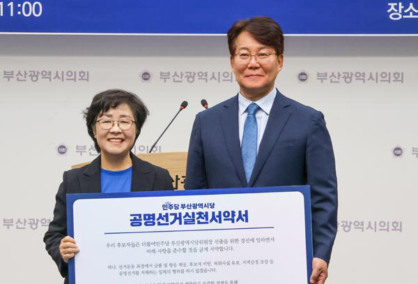 | ´õºÒ¾î¹ÎÁÖ´ç ºÎ»ê½Ã´ç º¸±È¼±°Å Èĺ¸ÀÎ ¹Ú¿µ¹Ì(¿ÞÂÊ), º¯¼º¿Ï Áö¿ªÀ§¿øÀåÀÌ 29ÀÏ ºÎ»ê½ÃÀÇȸ¿¡¼ °ø¸í¼±°Å ½Çõ ¼¾àÀ» Çϰí ÀÖ´Ù. ±è¹ÎÁ¤ ±âÀÚ |