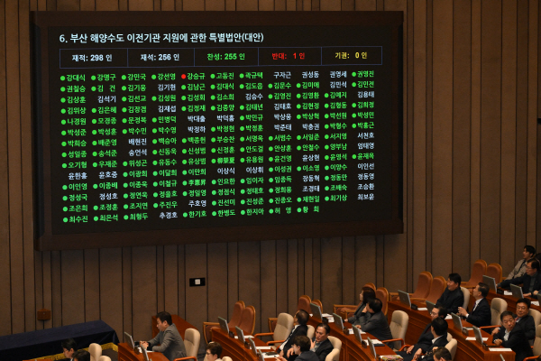 ºÎ»ê ÇØ¾ç¼öµµ ÀÌÀü±â°ü Áö¿ø¿¡ °üÇÑ Æ¯º°¹ýÀÌ 27ÀÏ ±¹È¸ º»È¸ÀǸ¦ Åë°úÇß´Ù. 255¸íÀÇ Âù¼ºÇ¥°¡ ½ñ¾ÆÁ³Áö¸¸, Á¤ÀÛ ºÎ»êÀ» Áö¿ª±¸·Î µÐ ±¹¹ÎÀÇÈû Á¶½Âȯ(Áß¿µµµ) Á¶°æÅÂ(»çÇÏÀ») ÀÇ¿øÀº Ç¥°á¿¡ ºÒÂüÇß´Ù. ƯÈ÷ Á¶½Âȯ ÀÇ¿øÀº ÇØ¾ç¼ö»êºÎ Àå°ü Ãâ½ÅÀ̰í, µÎ ÀÇ¿ø ¸ðµÎ ¼º°ú´Â È«º¸Çϸ鼵µ Ç¥°áÀº ¡®³ª ¸ô¶ó¶ó¡¯Çß´Ù´Â ºñÆÇÀÌ ³ª¿Â´Ù.