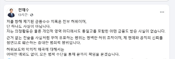 Àü Àå°üÀº ÆäÀ̽ººÏ¿¡¼ ¡°Àú¸¦ ÇâÇØ Á¦±âµÈ ±Ýǰ¼ö¼ö ÀÇȤÀº ÀüºÎ ÇãÀ§ÀÌ¸ç ´Ü Çϳªµµ »ç½ÇÀÌ ¾Æ´Ï´Ù¡±¶ó°í ¹àÇû´Ù. ±×´Â ÀÌ¾î ¡°ÀÇÁ¤È°µ¿Àº ¹°·Ð °³ÀÎÀû ¿µ¿ª ¾îµð¿¡¼µµ ÅëÀϱ³¸¦ Æ÷ÇÔÇÑ ¾î¶² ±Ýǰµµ ¹ÞÀº »ç½ÇÀÌ ¾ø´Ù¡±°í °Á¶Çß´Ù.