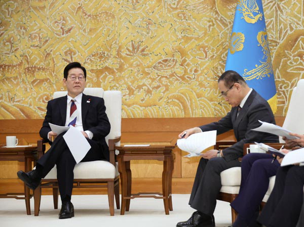 | ÀÌÀç¸í ´ëÅë·ÉÀÌ 29ÀÏ Ã»¿Í´ë·Î Ãâ±ÙÇØ Âü¸ðÁø°ú Â÷´ãÀ» Çϰí ÀÖ´Ù. ¿¬ÇÕ´º½º |