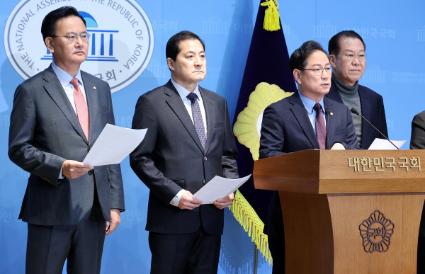 ±¹È¸ ±âȹÀçÁ¤À§¿øÈ¸ ¼Ò¼Ó ±¹¹ÎÀÇÈû ÀÇ¿øµéÀÌ 5ÀÏ ±¹È¸ ¼ÒÅë°ü¿¡¼­ ÀÌÇýÈÆ ±âȹ¿¹»êó Àå°ü Èĺ¸ÀÚ Àλçû¹®È¸¿Í °ü·ÃÇÑ ¼º¸í ¹ßÇ¥ ±âÀÚȸ°ßÀ» Çϰí ÀÖ´Ù. ¿ÞÂʺÎÅÍ À¯»ó¹ü, ¹Ú´ëÃâ, ¹Ú¼ö¿µ, ±Ç¿µ¼¼ ÀÇ¿ø. (¿¬ÇÕ´º½º)