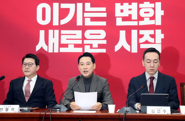 ±¹¹ÎÀÇÈû À嵿Çõ ´ëÇ¥ÀÇ ¼â½Å¾È¿¡ À±¼®¿­ Àü ´ëÅë·É°úÀÇ ´ÜÀý ¸Þ½ÃÁö°¡ ºüÁö¸é¼­ ´ç ³»È«ÀÌ ÀçÁ¡È­ÇÑ´Ù. ´ç ÁöµµºÎ´Â ¡°°è¾ö°ú źÇÙÀÇ °­À» °Ç³Ê°Ú´Ù¡±°í ÇÑ Àå ´ëÇ¥ ¹ß¾ðÀÌ Àý¿¬ ÀÇÁö¸¦ ³»Æ÷ÇÑ °ÍÀ̶ó°í ÇÏÁö¸¸, Ä£ÇÑ(Ä£Çѵ¿ÈÆ)°è´Â Æò°¡ÀýÇÏÇϸ鼭 ºñÆÇÀ» °¡Çß´Ù.