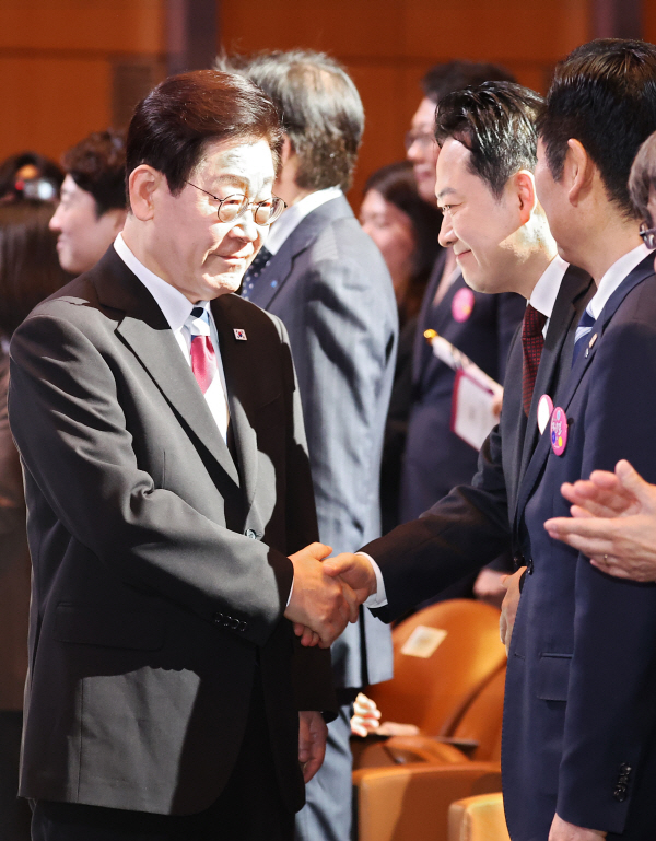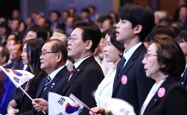 | ÀÌÀç¸í ´ëÅë·ÉÀÌ 1ÀÏ ¼¿ï °³²±¸ ÄÚ¿¢½º¿¡¼ ¿¸° Á¦107ÁÖ³â 3¡¤1Àý ±â³ä½Ä¿¡¼ ±¹¹ÎÀÇÈû À嵿Çõ ´ëÇ¥¿Í ¾Ç¼öÇϰí ÀÖ´Ù. 2026.3.1 ¿¬ÇÕ´º½º