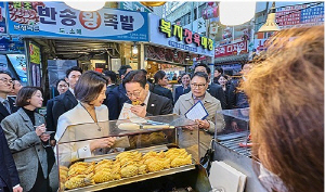 ÀÌÀç¸í ´ëÅë·É ºÎºÎ´Â 15ÀÏ °æ³² â¿ø¿¡¼­ ¿­¸° Á¦66ÁÖ³â 3¡¤15Àǰбâ³ä½Ä¿¡ Âü¼®ÇÑ µÚ Àα٠ÀüÅë½ÃÀåÀÎ ¹Ý¼Û½ÃÀåÀ» ¹æ¹®Çß´Ù. ÀÌ ´ëÅë·É ºÎºÎ´Â Àå¹Ù±¸´Ï ¹°°¡¸¦ »ìÆìº¸°í »óÀεé°ú ´ëÈ­µµ ³ª´³´Ù.