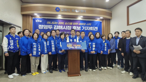 ´õºÒ¾î¹ÎÁÖ´ç ±èÇØ½ÃÀå È帷Π¼±ÃâµÈ Á¤¿µµÎ ¿¹ºñÈ帰¡ 9ÀÏ ±èÇØ½Ãû ÇÁ·¹½º¼¾ÅÍ¿¡¼ ±âÀÚȸ°ßÀ» ¿°í ¡°¹ÎÁÖ´çÀº ¿øÆÀ¡±À̶ó¸ç ¡°¾ÐµµÀûÀÎ ½Â¸®·Î »õ·Î¿î ±èÇØ¸¦ ¿°Ú´Ù¡±°í ¹àÇû´Ù.