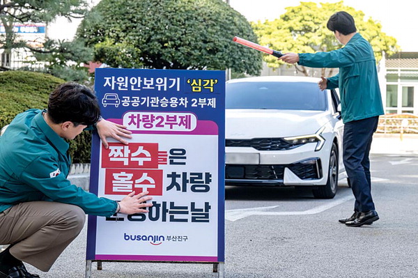 | ºÎ»ê ºÎ»êÁø±¸Ã» ÀÔ±¸¿¡¼ °ü°èÀÚµéÀÌ Â÷·® 2ºÎÁ¦ ½ÃÇà ¾È³»¹®À» ¼³Ä¡Çϰí ÀÖ´Ù. ±¹Á¦½Å¹®DB |