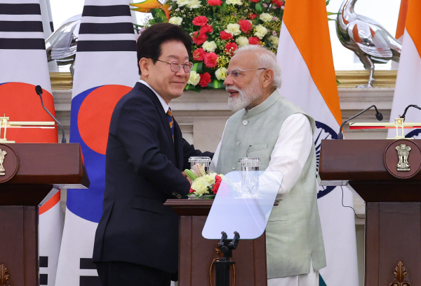 ÀÌÀç¸í ´ëÅë·ÉÀÇ Àεµ ±¹ºó ¹æ¹®À» °è±â·Î ¿¸° ÇÑ¡¤Àεµ Á¤»óȸ´ã¿¡¼ ¾ç±¹ °£ °æÁ¦Çù·ÂÀ» °ÈÇϱâ À§ÇÑ ¡®Àü´ã µ¥½ºÅ©¡¯ ¼³Ä¡ ¹æ¾ÈÀÌ ³íÀǵƴÙ.
