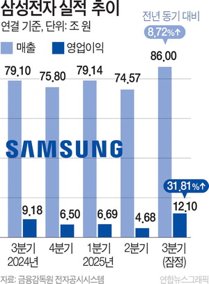»ï¼ºÀüÀÚ´Â 14ÀÏ ¿ÃÇØ 3ºÐ±â ¿¬°á±âÁØ ¸ÅÃâ 86Á¶ ¿ø, ¿µ¾÷ÀÌÀÍ 12Á¶1000¾ï ¿øÀ¸·Î ÀáÁ¤ Áý°èµÆ´Ù°í °ø½ÃÇß´Ù. Àü³â µ¿±â ´ëºñ ¸ÅÃâÀº 8.72%, ¿µ¾÷ÀÌÀÍÀº 31.81% Áõ°¡Çß´Ù. ½ÃÀå¿¡¼´Â ¹ÝµµÃ¼¸¦ ´ã´çÇÏ´Â µð¹ÙÀ̽º¼Ö·ç¼Ç(DS) ºÎ¹®ÀÇ ¿µ¾÷ÀÌÀÍÀ» 5Á¶ ¿ø ÈĹݴë·Î º»´Ù. D·¥¿¡¼¸¸ 6Á¶ ¿ø ÀÌ»óÀÇ ¿µ¾÷ÀÌÀÍÀ» ±â·ÏÇß´Ù´Â Àü¸ÁÀÌ ³ª¿Â´Ù. DS ºÎ¹®Àº ÀüºÐ±â ¹ÌÁß ¹«¿ª±ÔÁ¦ ¿µÇâ ¼Ó ´ë±Ô¸ð Àç°í ÀÚ»ê Æò°¡ Ãæ´ç±ÝÀÌ ¹ß»ýÇÏ¸é¼ ¿µ¾÷ÀÌÀÍÀÌ Àü³â µ¿±â ´ëºñ ¹ÝÅ丷 ³µÁö¸¸ 3ºÐ±â µé¾î D·¥ °¡°ÝÀÇ Áö¼ÓÀû »ó½Â°ú °í´ë¿ªÆø ¸Þ¸ð¸®(HBM) ÃâÇÏ·® Áõ°¡, ºñ¸Þ¸ð¸® »ç¾÷ÀÇ ÀûÀÚ ±Ô¸ð Ãà¼Ò ¿µÇâÀ¸·Î ¹Ýµî ¼Óµµ°¡ »¡¶óÁ³´Ù. AI È®»ê¿¡ µû¸¥ ¼¹ö¿ë ¸Þ¸ð¸® ¼ö¿ä ±ÞÁõ°ú °¡°Ý »ó½Â¼¼°¡ ²ªÀÌÁö ¾Ê¾Ò°í HBMµµ º»°ÝÀûÀ¸·Î °ø±ÞÀ» È®´ëÇÒ °ÍÀ¸·Î ¿¹»óµÇ±â ¶§¹®ÀÌ´Ù.