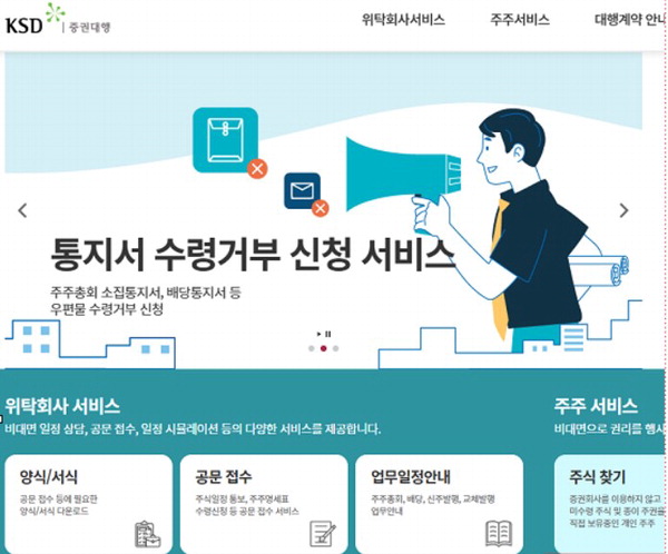 Áõ±Ç´ëÇà ȨÆäÀÌÁöÀÇ ¡®ÅëÁö¼ ¼ö·É°ÅºÎ ½Åû¡¯ µî ¼ºñ½º ´ë»óÀº ¿¹Å¹¿øÀ» ¸íÀǰ³¼´ë¸®ÀÎÀ¸·Î ¼±ÀÓÇÑ È¸»ç¿¡ ÇÑÁ¤µÈ´Ù. ÀÌ¿¡ ÁÖÁÖµéÀº ¼ºñ½º ½Åû Àü ȸ»çÀÇ ¸íÀǰ³¼´ë¸®ÀÎÀ» È®ÀÎÇÏ´Â °Ô ÁÁ´Ù. ÀÌ·± ÀýÂ÷´Â KSD Áõ±ÇÁ¤º¸Æ÷Åп¡¼ È®ÀÎÇÒ ¼ö ÀÖ´Ù. ¿¹°á¿ø °ü°èÀÚ´Â ¡°È¸»ç ¹× ÁÖÁÖµéÀÌ ½Å¼ÓÇÏ°í Æí¸®ÇÏ°Ô Áõ±Ç´ëÇà ¼ºñ½º¸¦ Á¦°ø ¹ÞÀ» ¼ö ÀÖµµ·Ï Áö¼ÓÀûÀ¸·Î ³ë·ÂÇϰڴ١±°í ¹àÇû´Ù.