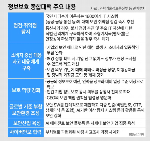 º¸¾È»ê¾÷ À°¼ºÀ» À§ÇØ AI ¿¡ÀÌÀüÆ® º¸¾È Ç÷§Æû µî Â÷¼¼´ë º¸¾È ±â¾÷À» ÁýÁß À°¼º(¿¬°£ 30°³»ç)ÇÏ°í º¸¾È »ê¾÷ÀÇ Àúº¯ È®´ë¸¦ À§ÇØ Á¤º¸º¸È£ ¼ºñ½º ¹üÀ§¸¦ È®´ëÇÑ´Ù. º¸¾È ÃÖ°í Àü¹®°¡ÀÎ ÈÀÌÆ®ÇØÄ¿(¿¬°£ 500¿© ¸í) ¾ç¼º ü°è¸¦ ±â¾÷ ¼ö¿ä·Î Àç¼³°èÇϰí Á¤º¸º¸È£Æ¯¼ºÈ´ëÇÐ(ÇкÎ, 7°³±³), À¶ÇÕº¸¾È´ëÇпø(¼®¹Ú»ç, 9°³±³)À» 5±Ø3Ư ±Ç¿ªº° ¼ºÀå¿£Áø »ê¾÷(ºÎ¿ï°æÀº ½º¸¶Æ®Á¶¼± µî)¿¡ Æ¯ÈµÈ º¸¾È ÀÎÀç ¾ç¼º Çãºê·Î ±â´ÉÀ» °ÈÇÏ´Â µî ÀüÁֱ⠺¸¾È Àη ¾ç¼ºÀ» ü°èÈ¡¤°íµµÈÇÑ´Ù. ¹è°æÈÆ °ú±âÁ¤ÅëºÎ Àå°ü °â ºÎÃѸ®´Â ´ë±¹¹Î ºê¸®Çο¡¼ ¡°°ü°èºÎó´Â À̹ø Á¾ÇÕ´ëÃ¥ÀÌ ÇöÀå¿¡¼ Á¦´ë·Î ÀÛµ¿µÉ ¶§±îÁö ½ÇÇà °úÁ¤À» ¸é¹ÐÈ÷ »ìÆìº¼ °ÍÀÌ¸ç ºÎÁ·ÇÑ ºÎºÐÀ» Áö¼ÓÀûÀ¸·Î º¸¿ÏÇØ ³ª°¡°Ú´Ù¡±¸é¼ ¡°¾ÕÀ¸·Îµµ Á¤ºÎ´Â AI °±¹À» µÞ¹ÞħÇÏ´Â °ß°íÇÑ Á¤º¸º¸È£ ü°è ±¸ÃàÀ» ÃëÇØ ÃÑ·ÂÀ» ±â¿ïÀ̰ڴ١±°í °Á¶Çß´Ù.