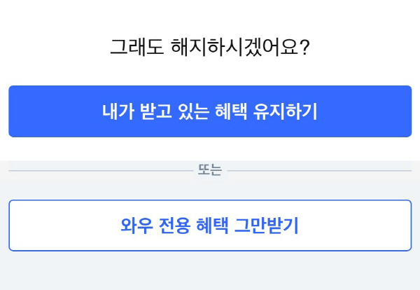 ÄíÆÎ ¿Í¿ì ¸â¹ö½Êµµ ºñ½ÁÇÕ´Ï´Ù. ¸â¹ö½Ê ÇØÁöÇϱ⸦ ´©¸£¸é ¡°³²Àº ±â°£ ÇýÅÃÀ» ´õ ÀÌ¿ëÇØº¸°í °áÁ¤Çϼ¼¿ä¡±¶ó¸ç ÇØÁöÇϸé ÄíÆÎÇ÷¹ÀÌ, ·ÎÄÏÇÁ·¹½Ã, ¿Í¿ì ÇÒÀΰ¡, »õº®¹è¼Û¡¤´çÀϹè¼Û, ¹«·á¹è¼Û µî ¸â¹ö½Ê ÇýÅÃÀ» ¹ÞÀ» ¼ö ¾ø´Ù°í ²÷ÀÓ¾øÀÌ °­Á¶ÇÕ´Ï´Ù. ¹è´ÞÀǹÎÁ· ¹è¹Î Ŭ·´µµ °¢Á¾ °áÁ¦¡¤Á¦ÈÞ ÇýÅðú ¸â¹ö½Ê À¯Áö ¶§ ¹ÞÀ» ¼ö ÀÖ´Â ÄíÆùÀ» º¸¿©ÁÖ°í ÇØÁö ÀÇ»ç È®ÀÎ ÀýÂ÷¸¦ ¼öÂ÷·Ê °ÅµìÇÕ´Ï´Ù.