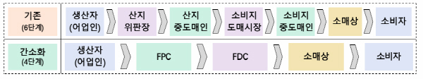 Á¤ºÎ°¡ ¾î¾÷ÀÎÀÌ »ý»êÇÑ ¼ö»ê¹°ÀÌ º¹ÀâÇÑ °æ·Î¸¦ °ÅÄ¡Áö ¾Ê°í ¼ÒºñÀÚ¿¡°Ô ´Ù´Ù¸¦ ¼ö ÀÖ°Ô 6´Ü°è·Î ÀÌ·ïÁø ±âÁ¸ÀÇ À¯Åë°æ·Î¸¦ 4°³·Î ÁÙÀδÙ. ¶Ç ¿Â¶óÀÎ µµ¸Å½ÃÀå¿¡¼ °Å·¡ °¡´ÉÇÑ Ç°¸ñÀº 60°³¿¡¼ 134°³·Î ´Ã¸°´Ù.