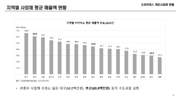 23ÀÏ µ¿³²Áö¹æÅë°èû¿¡ µû¸£¸é ºÎ¿ï°æ ÀüÀÚ»ó°Å·¡(ÀÌÄ¿¸Ó½º) »ç¾÷ ¼ºÀå¼¼°¡ °¡ÆÄ¸£´Ù. ±â¾÷Åë°èµî·ÏºÎ¸¦ ºÐ¼®ÇÑ °á°ú ¿¬ ¸ÅÃâ¾× 1¾ï2000¸¸ ¿ø ÀÌ»óÀÎ °í¼Òµæ »ç¾÷ü ¼ö´Â Áö³­ÇØ ±âÁØ 4474°÷À¸·Î 2014³â(998°³) ´ëºñ 348% Áõ°¡Çß´Ù. ÀÌ´Â °°Àº ±â°£ Àü±¹ Áõ°¡¼¼(273%)¸¦ ÈξÀ ¿ôµµ´Â ¼öÁØÀÌ´Ù. ÀüÀÚ»ó°Å·¡´Â ÀÏ¹Ý ¼ÒºñÀÚ¸¦ »ó´ë·Î ¿Â¶óÀÎ Åë½Å¸ÁÀ» ÅëÇØ °¢Á¾ »óǰÀ» ÆÇ¸ÅÇÏ´Â »ê¾÷ Ȱµ¿ÀÌ´Ù. ³×À̹ö ½º¸¶Æ® ½ºÅä¾î, ÄíÆÎ µî¿¡ ÀÔÁ¡ÇÑ °³ÀÎ ÆÇ¸ÅÀÚ°¡ Àüü »ç¾÷ÀÇ 95.5%¸¦ Â÷ÁöÇÑ´Ù. Àü±¹ »ç¾÷ü ¼ö´Â 2023³â ±âÁØ 82¸¸8000¸íÀ¸·Î 2014³â(15¸¸2000¸í)¿¡ ºñÇØ 445% ´Ã¾ú´Ù. ¸ÅÃâ¾×Àº °°Àº ±â°£ 7Á¶¿¡¼­ 30Á¶·Î 4¹è ÀÌ»ó Áõ°¡Çß´Ù.