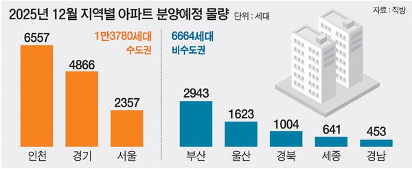 ÀÌ´Þ ºÐ¾ç ¿¹Á¤ ¹°·®Àº ¼öµµ±Ç¿¡ 67%°¡ ÁýÁߵƴÙ. ÀÎõ(6557¼¼´ë)ÀÌ °¡Àå ¸¹°í °æ±â(4866¼¼´ë)¿Í ¼¿ï(2357¼¼´ë) µî 1¸¸3780¼¼´ë´Ù. ºñ¼öµµ±Ç¿¡´Â Àý¹Ý ¼öÁØÀÎ 6664¼¼´ë°¡ °ø±ÞµÉ ¿¹Á¤ÀÌ´Ù. ºÎ»êÀº 2943¼¼´ë¸¦ Â÷ÁöÇØ ºñ¼öµµ±Ç °¡¿îµ¥ °¡Àå ¸¹Àº °ø±ÞÀÌ ¿¹Á¤µÈ »óÅ´Ù. ¿¡ÄÚµ¨Å¸½ÃƼ °øµ¿5ºí·Ï ´ë±¤·ÎÁ¦ºñ¾Ó&¸ð¾Æ¿¤°¡(998¼¼´ë, °¼±¸ °µ¿µ¿) µ¿·¡Çª¸£Áö¿À¿¡µàÆ÷·¹(1481¼¼´ë, µ¿·¡±¸ ¾È¶ôµ¿) ÇÑÈÆ÷·¹³ªºÎ»ê´ë¿¬(367¼¼´ë, ³²±¸ ´ë¿¬µ¿) µîÀÌ ´ëÇ¥ÀûÀÌ´Ù.