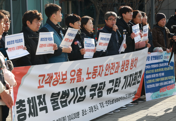 | 9ÀÏ ¼¿ï ¼ÛÆÄ±¸ ÄíÆÎ º»»ç ¾Õ¿¡¼ ¿¸° °í°´Á¤º¸ À¯Ãâ, ³ëµ¿ÀÚ ¾ÈÀü°ú »ý¸í ¹æÄ¡ ÃÑüÀû ºÒ¹ý±â¾÷ ÄíÆÎ ±Ôź ±âÀÚȸ°ß¿¡¼ Âü°¡ÀÚµéÀÌ ¹ß¾ðÇϰí ÀÖ´Ù. ¿¬ÇÕ´º½º
