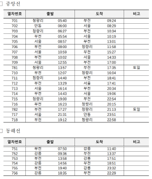 12¿ù 30ÀϺÎÅÍ´Â ºÎ»ê(ºÎÀü¿ª)°ú ¼¿ï(û·®¸®¿ª)À» ÀÕ´Â Áß¾Ó¼±¿¡ ½Ã¼Ó 260§°·Î ´Þ¸®´Â KTX-ÀÌÀ½ÀÇ ¿îÇà Ƚ¼ö°¡ ´Ã¾î³´Ù. ¶Ç ºÎ»ê(ºÎÀü¿ª)°ú °¸ªÀ» ¿À°¡´Â µ¿Çؼ±¿¡´Â ÀÌ °í¼Ó¿Â÷°¡ ½Å±Ô ÅõÀԵȴÙ. ÀÌ¿¡ µû¶ó ÃÖ±Ù ÀϺΠ±¸°£ÀÇ ½Åȣü°è °³·®ÀÌ ³¡³ Áß¾Ó¼±ÀÇ ¿îÇà ½Ã°£Àº 3½Ã°£ 56ºÐ¿¡¼ 3½Ã°£ 38ºÐÀ¸·Î, µ¿Çؼ± ¿îÇà ½Ã°£Àº 5½Ã°£ 4ºÐ¿¡¼ 3½Ã°£ 54ºÐÀ¸·Î °¢°¢ ÁÙ¾îµç´Ù.