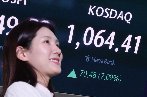 26ÀÏ Çѱ¹°Å·¡¼Ò¿¡ µû¸£¸é À̳¯ ÄÚ½º´Ú Áö¼ö´Â ÀüÀå ´ëºñ 70.48Æ÷ÀÎÆ®(p) ±Þµî(7.09%)ÇÑ 1064.41¿¡ °Å·¡¸¦ ¸¶ÃÆ´Ù. ÀÌ´Â Á¾°¡ ±âÁØ 2000³â 9¿ù(1074.10) ÀÌÈÄ ¾à 25³â 5°³¿ù ¸¸¿¡ ÃÖ°íÄ¡´Ù. ÄÚ½º´Ú Áö¼ö´Â ÀÌ´Þ µé¾î 15% ±ÞµîÇØ Áö³´Þ(1.4%) »ó½Â·üÀ» Å©°Ô ¾ÕÁú·¶´Ù. Áö¼ö´Â À̳¯ ÇѶ§ 1064.44±îÁö ¿À¸£±âµµ Çß´Ù.