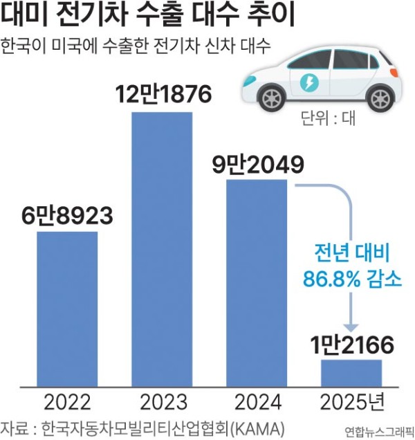 ÀÌ´Â Àü±âÂ÷ ¼öÃâÀÌ º»°ÝÈ­ÇÑ 2022³â ÀÌÈÄ ¿¬°£ ±âÁØ ÃÖÀúÄ¡´Ù. 2024³â(9¸¸2049´ë)°ú ºñ±³ÇÏ¸é ¹«·Á 86.8% ±Þ°¨Çß´Ù.