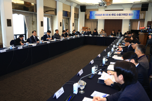 ³ó¸²Ãà»ê½ÄǰºÎ´Â 4ÀÏ ¿ÀÀü ¼¿ï¿¡ ÀÖ´Â Çѱ¹ÇÁ·¹½º¼¾ÅÍ¿¡¼ ¡®2026³â Á¦1Â÷ K-Ǫµå ¼öÃâ±âȹ´Ü¡¯ ȸÀǸ¦ ¿¾ú´Ù. ÀÌ Á¶Á÷Àº Áö³ÇØ 12¿ù 23ÀÏ ÀÖ¾ú´ø ¡®±Û·Î¹ú K-Ǫµå ºñÀü ¼±Æ÷½Ä¡¯À» °è±â·Î ¸¸µé¾îÁ³´Ù. ȸÀÇ¿¡´Â °ü°è ºÎó, À¯°ü ±â°ü, ¼öÃ⡤ÄÜÅÙÃ÷¡¤¹°·ù ¾÷°è ¹Î°£À§¿øÀ» Æ÷ÇÔÇØ 29¸íÀÌ ÀÚ¸®¸¦ ÇÔ²²Çß´Ù.