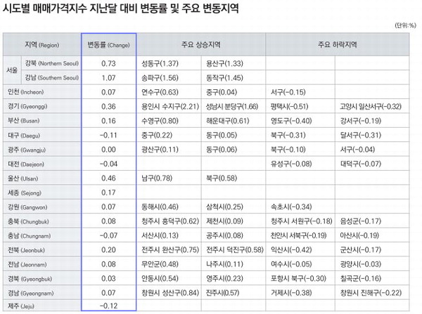 ºÎ»ê ¿ª½Ã »ó½Â ±âÁ¶¸¦ À̾´Ù. ºÎ»êÀÇ 1¿ù ÁÖÅà ¸Å¸Å°¡°ÝÀº Àü¿ù ´ëºñ 0.16% ¿Ã¶úÀ¸¸ç, ¾ÆÆÄÆ®¸¸ µû·Î ¶¼º¸¸é 0.20%ÀÇ »ó½Â·üÀ» ±â·ÏÇØ »ó´ëÀûÀ¸·Î ³ôÀº ¼±È£µµ¸¦ ¹Ý¿µÇß´Ù. ±Ç¿ªº°·Î´Â µ¿ºÎ»ê±ÇÀÌ 0.35% ¿À¸£¸ç Àüü »ó½Â¼¼¸¦ °ßÀÎÇÑ ¹Ý¸é, Áߺλê±ÇÀº 0.17% »ó½Â¿¡ ±×ÃÆ°í ¼ºÎ»ê±ÇÀº -0.09%ÀÇ º¯µ¿·üÀ» º¸¿© Áö¿ª ³» ¾ç±ØÈ Çö»óÀÌ ¶Ñ·ÇÇØÁö´Â ¾ç»óÀ» ¶ì¾ú´Ù.