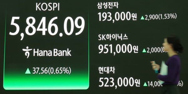 À̳¯ ¿ÀÀü 9½Ã 3ºÐ ÇöÀç ÄÚ½ºÇÇ´Â ÀüÀ庸´Ù 13.89Æ÷ÀÎÆ®(0.24%) ¿À¸¥ 5859.98¿¡ °Å·¡µÇ°í ÀÖ´Ù. Áö¼ö´Â ÀüÀå ´ëºñ 7.39Æ÷ÀÎÆ®(0.13%) »ó½ÂÇÑ 5853.48¿¡ ½ÃÀÛÇØ »ó½ÂÆøÀ» È®´ëÇÏ´Â ÁßÀÌ´Ù.