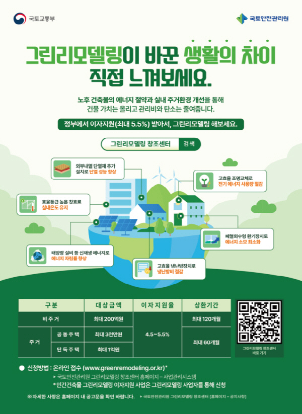±¹ÅäºÎ´Â ÀÌ °°Àº ¿©·ÐÀ» ¼ö·Å, ÀÌÀüº¸´Ù ´õ ³ªÀº Áö¿ø Á¶°ÇÀ» Æ÷ÇÔÇØ ±×¸°¸®¸ðµ¨¸µ »ç¾÷À» ´Ù½Ã ÁøÇàÇϱâ·Î Çß´Ù. ¿ì¼± ±âÁ¸¿¡ 4%¿´´ø ±âº» ÀÌÀÚ Áö¿øÀ²À» 4.5%·Î 0.5%Æ÷ÀÎÆ® ¿Ã¸°´Ù. ¶Ç ¿¡³ÊÁö ¼º´É °³¼± ºñÀ²(30% ÀÌ»ó)ÀÌ ³ô°Å³ª Â÷»óÀ§°èÃþ¡¤´ÙÀڳࡤ°í·ÉÀÚ¡¤½ÅÈ¥ºÎºÎ µî¿¡°Ô´Â 1%Æ÷ÀÎÆ®¸¦ Ãß°¡ÇØ ÃÖ´ë 5.5%±îÁö Áö¿øÇÑ´Ù.