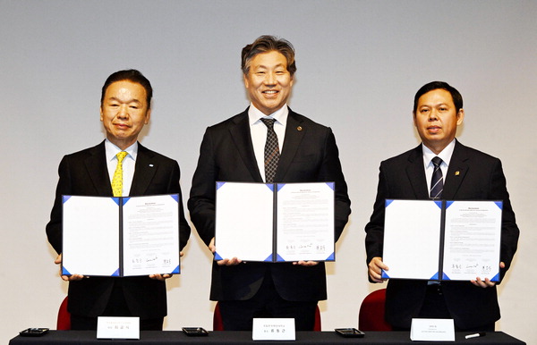 | 1ÀÏ ¡®ÇÑ-ÀÎ´Ï ÇØ¾çºÐ¾ß »êÇÐ Çù·ÂÆ÷·³¡¯ Ãâ¹ü½Ä¿¡¼ ÃֱݽÄ(¿ÞÂʺÎÅÍ) ÇùȸÀå°ú ·ùµ¿±Ù Çѱ¹Çؾç´ë ÃÑÀå, ¼úź ¹ÙÈ导¾Æ¸£ ³ªÀÚ¹«µò ÀÇÀåÀÌ ±â³äÃÔ¿µÀ» Çϰí ÀÖ´Ù. ±è¼ºÈ¿ ¼±ÀÓ±âÀÚ