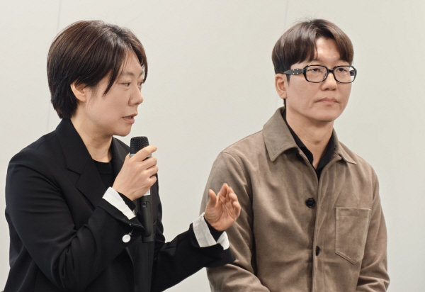 »ï¼ºÀüÀÚ µðÀÚÀÎÆÀ ÀÌÁö¿µ »ó¹«(¿ÞÂÊ)¿Í ¼ÛÁØ¿ë ±×·ìÀåÀÌ 9ÀÏ °¶·°½Ã ½ÅÀÛ µðÀÚÀÎ ¼³¸íȸ¿¡¼­ ±âÀÚµé°ú ¹®´äÇϰí ÀÖ´Ù. Á¤¿ÁÀç ±âÀÚ